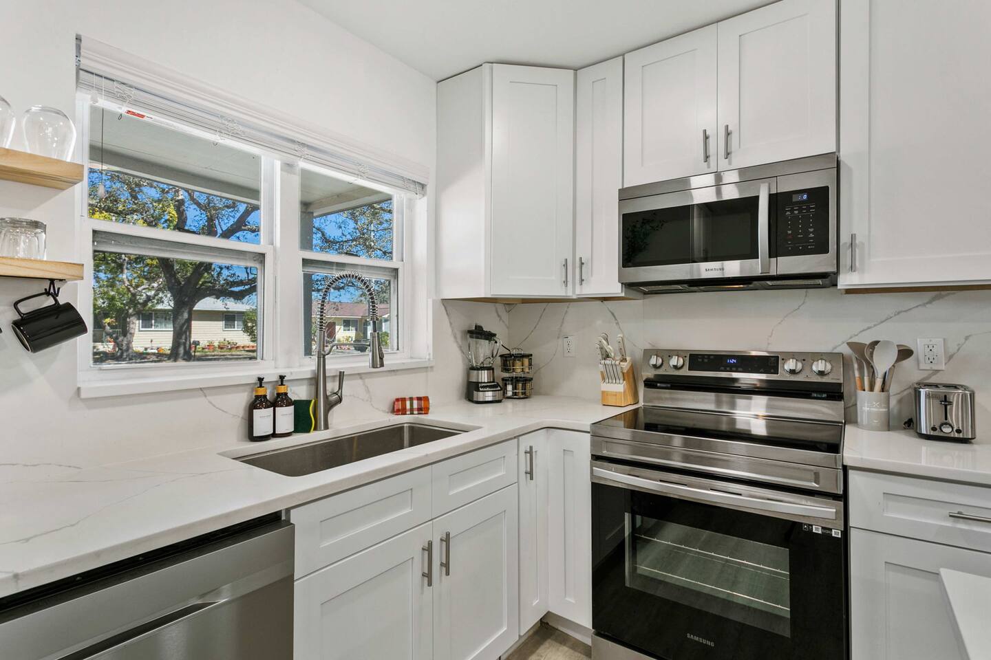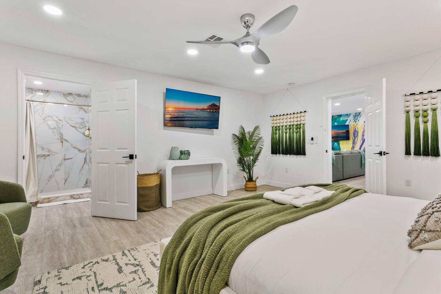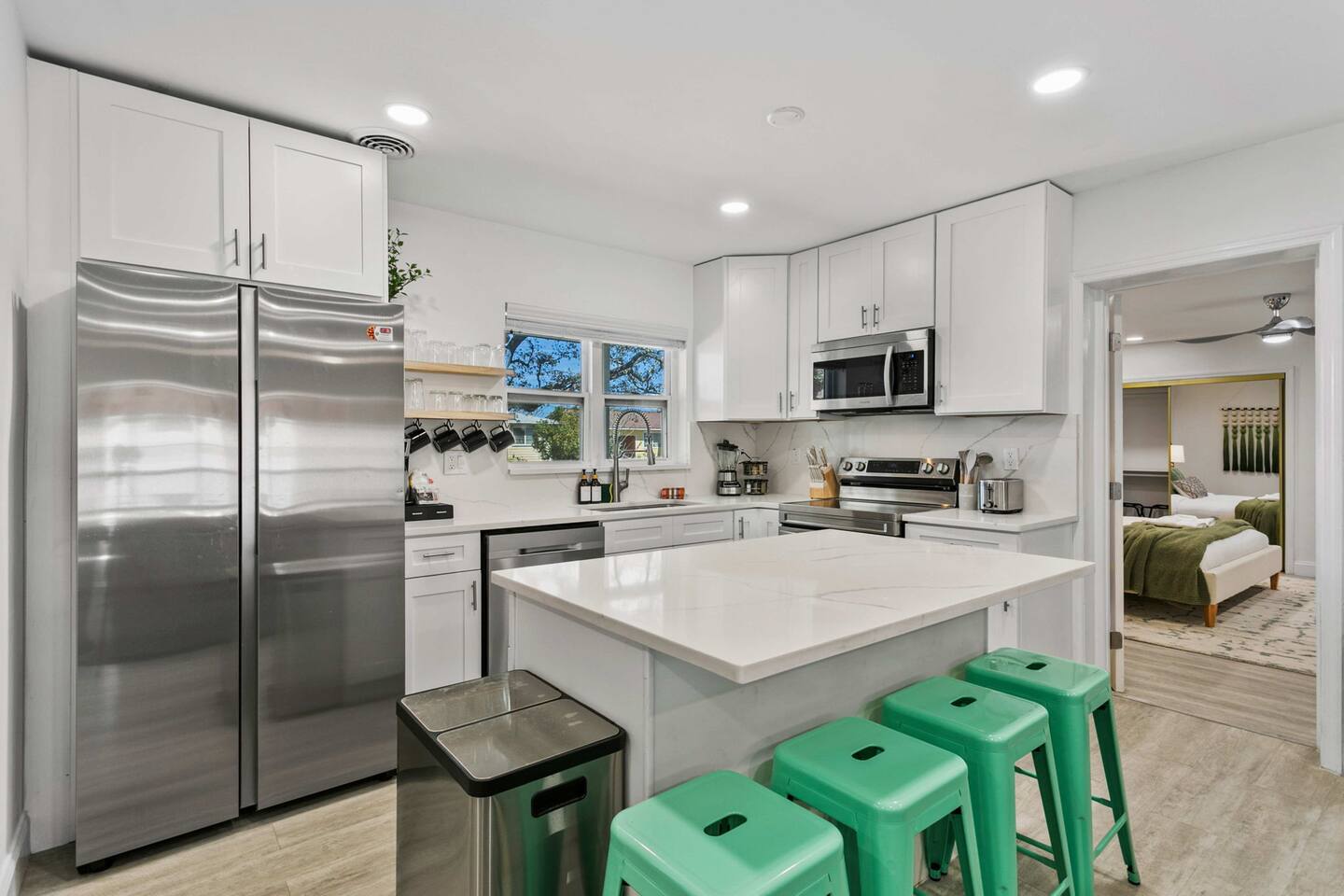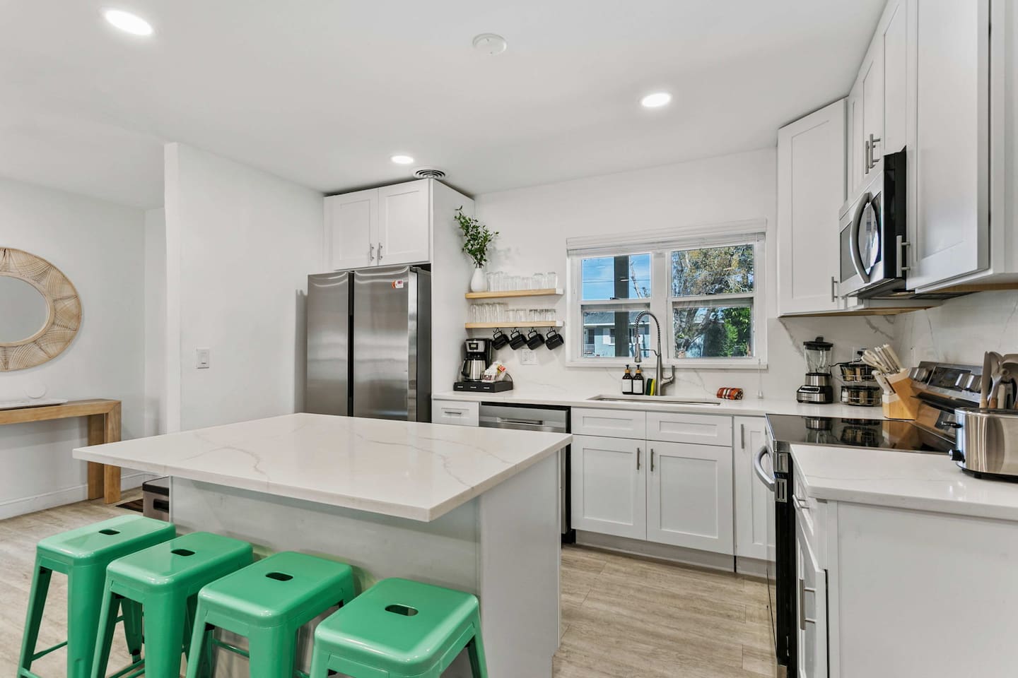 Guests will have access to the entire home and backyard during their stay. A few storage closets are locked for owner supplies and maintenance equipment. Entry is through a smart keypad lock, and guests will receive a unique door code before arrival.