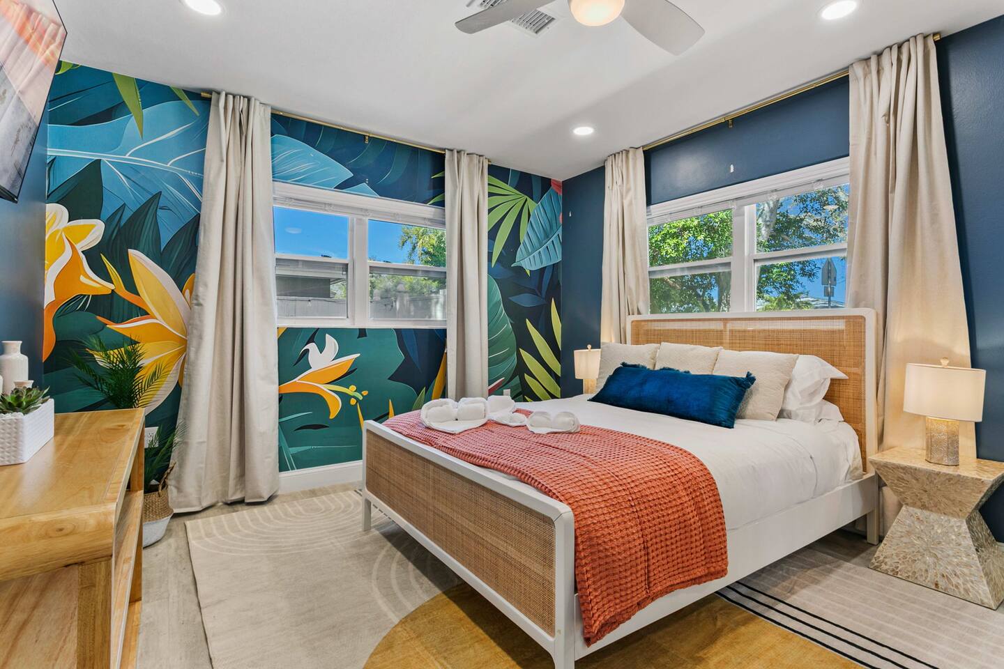 ✧ The pool is not heated and water temperature will vary depending on the weather and season. ✧ Both bathrooms feature walk-in showers only (no bathtubs). ✧ Outdoor lighting is set on an automatic evening schedule for ambiance and safety. ✧ Trash bins are located along the side of the house and accessible via the walkway.